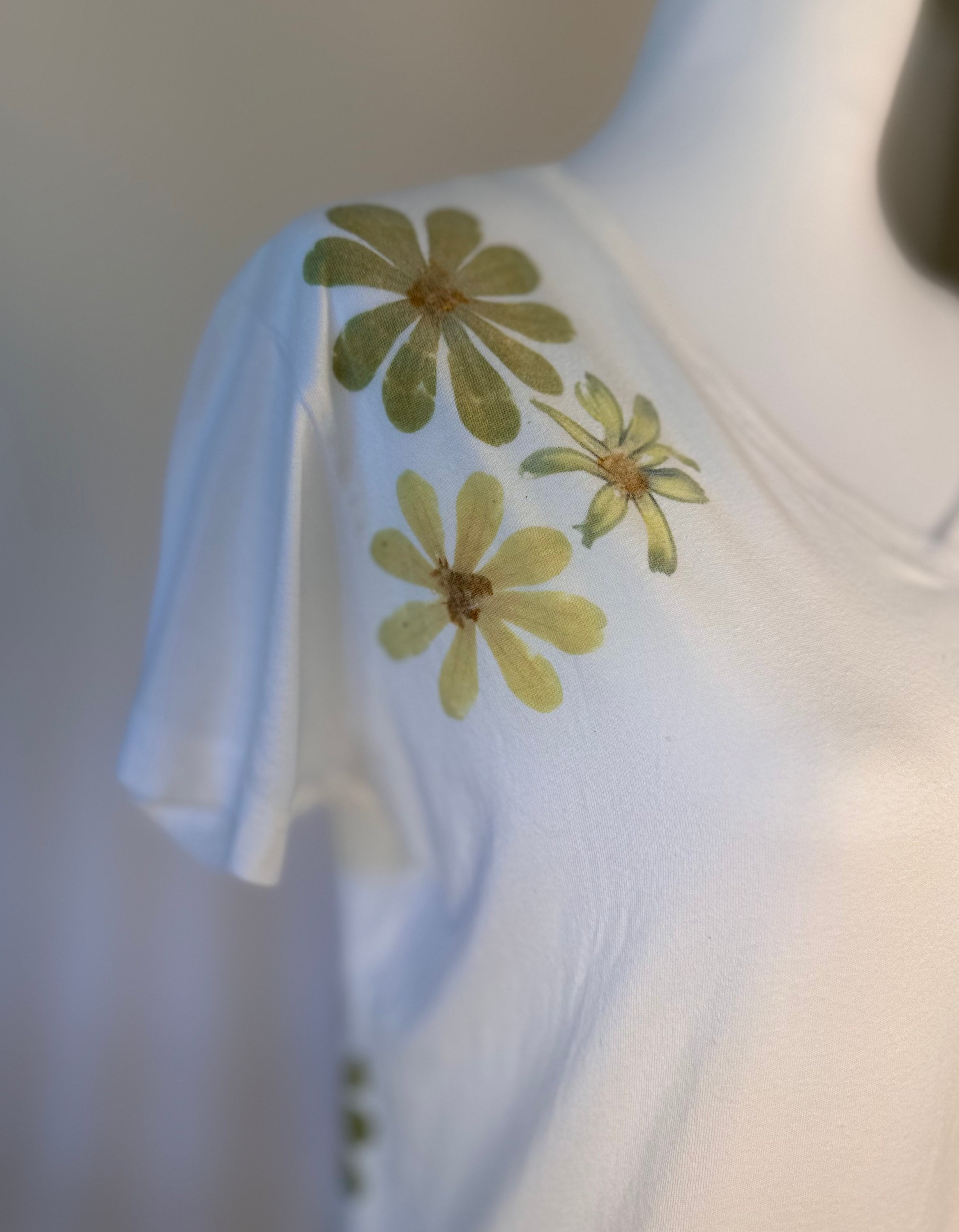 DESIGN: V Neck Relaxed fit TShirt, w/ Hammered Cosmos & Zinnia Flowers